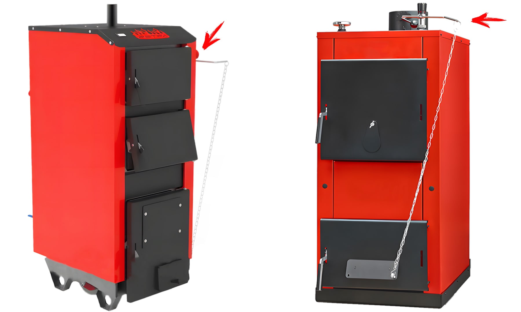 - Прикрепите цепочку к поддувалу котла