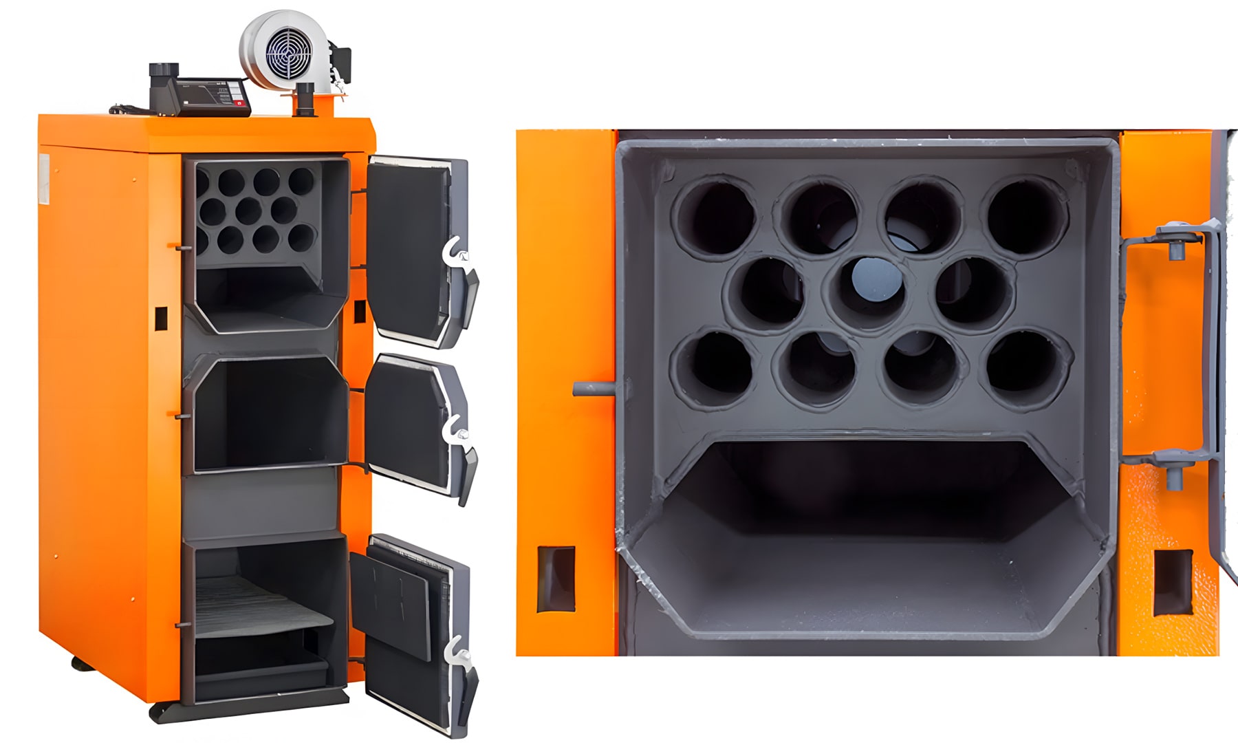 Более высокая эффективность достигается благодаря большей площади теплообмена – внутренняя поверхность цилиндрических труб обеспечивает оптимальный контакт дымовых газов с металлом, а внешняя поверхность эффективно передает тепло воде. Кроме того, цилиндрическая форма труб создает больший объем водяной рубашки вокруг каждой трубки по сравнению с плоскими пластинами.