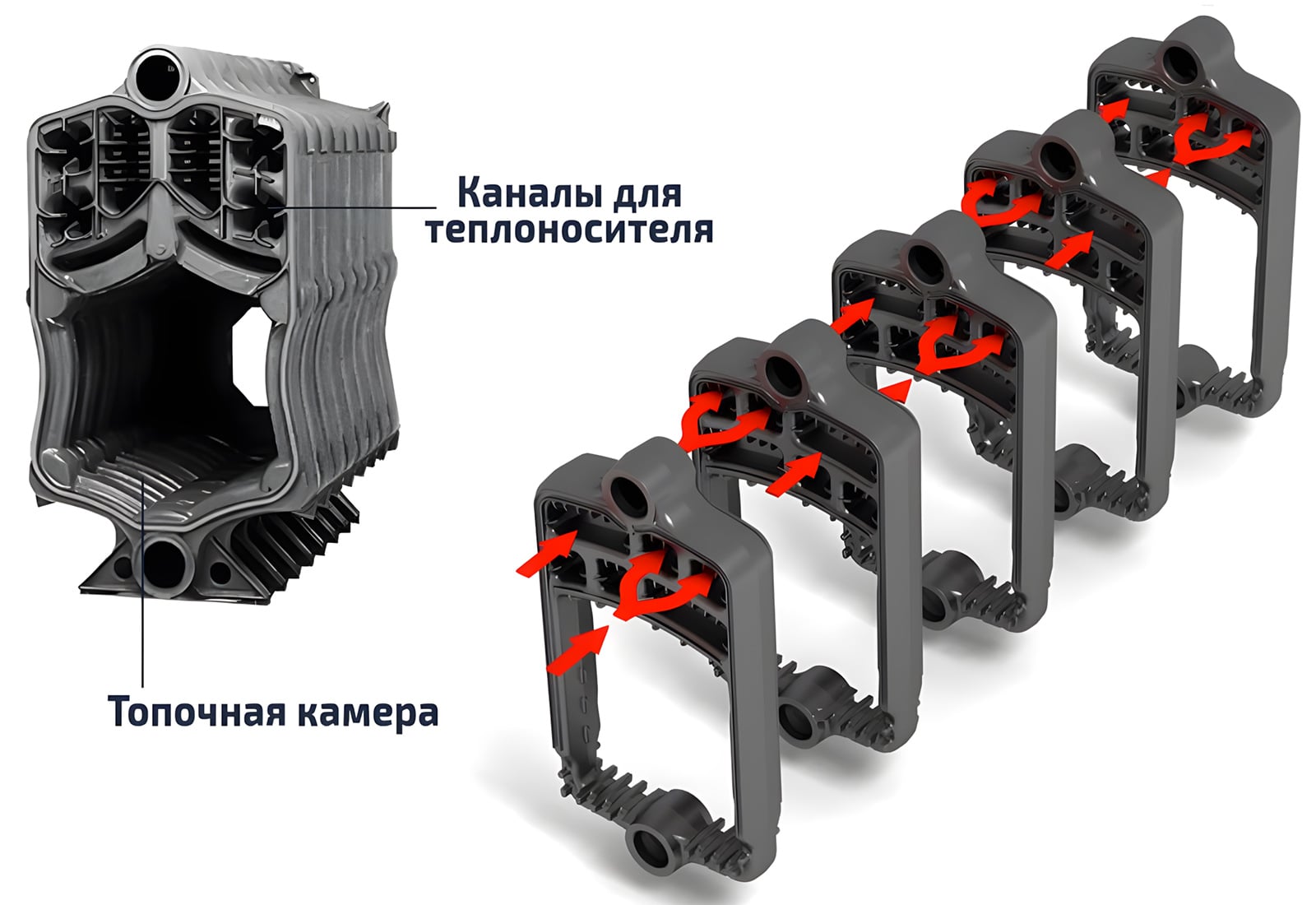 - Технологичность производства – литье отдельных секций проще изготовления цельного теплообменника сложной формы.