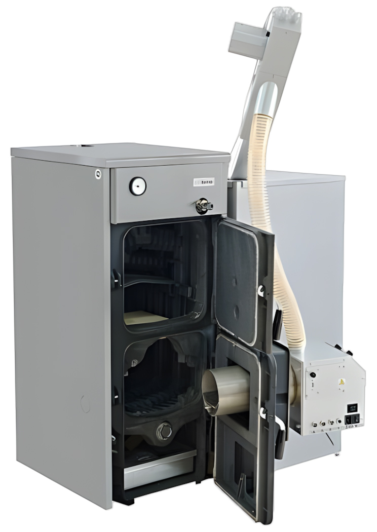 - Низкий КПД: чугунный котел с пеллетной горелкой будет иметь КПД 70-75%, тогда как специализированные пеллетные котлы достигают 90-95%