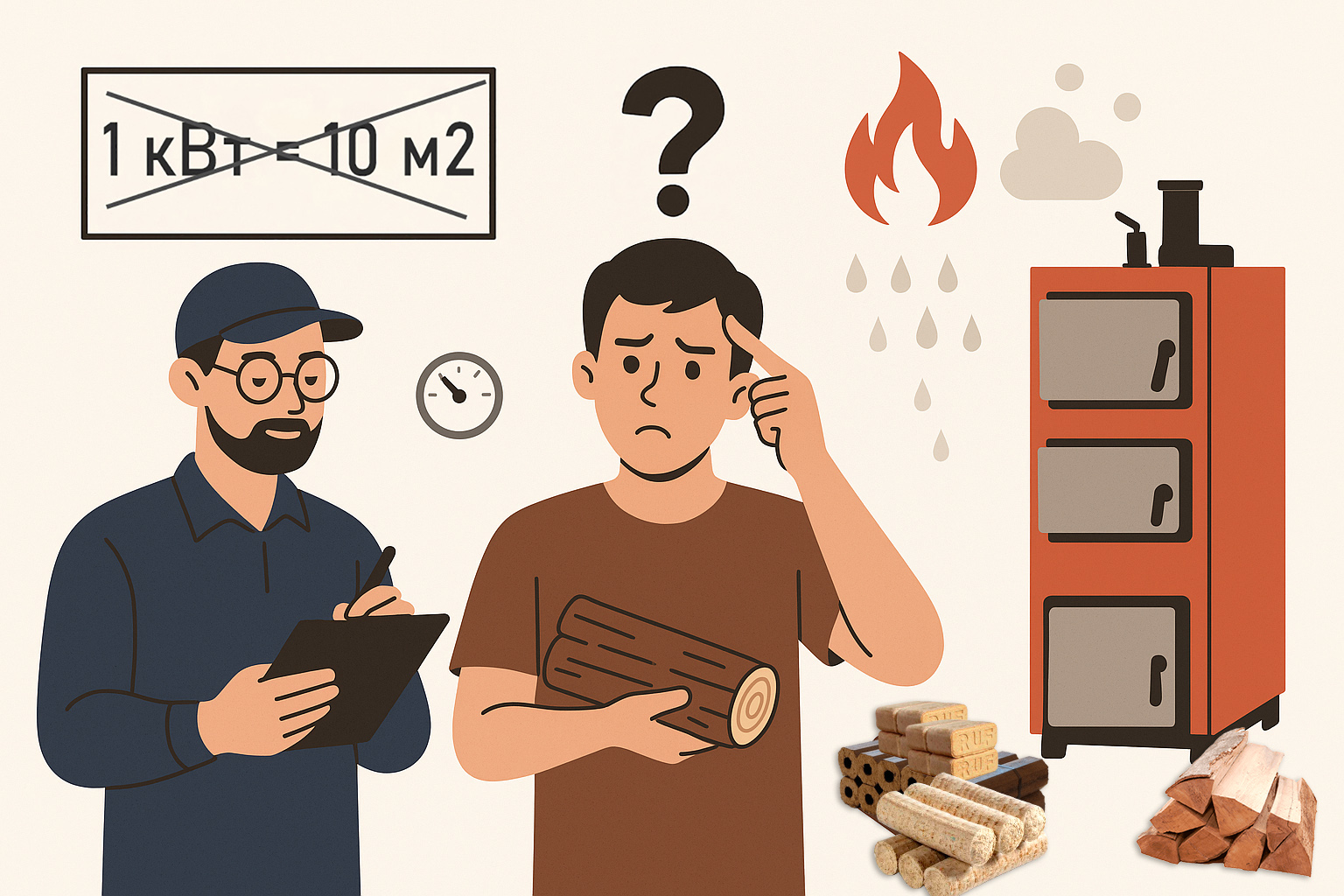 Ігнорування якості палива. На калорійність дров, вугілля, пелет впливає багато факторів, головний з яких – вологість. Щоб отримати тепло з вологих дров, котел спочатку витрачає енергію на випаровування води. Наприклад, з дров вологістю 35% замість 1 кВт корисного тепла Ви отримаєте лише 0,7-0,8 кВт – решта піде на “сушіння” палива прямо в топці.