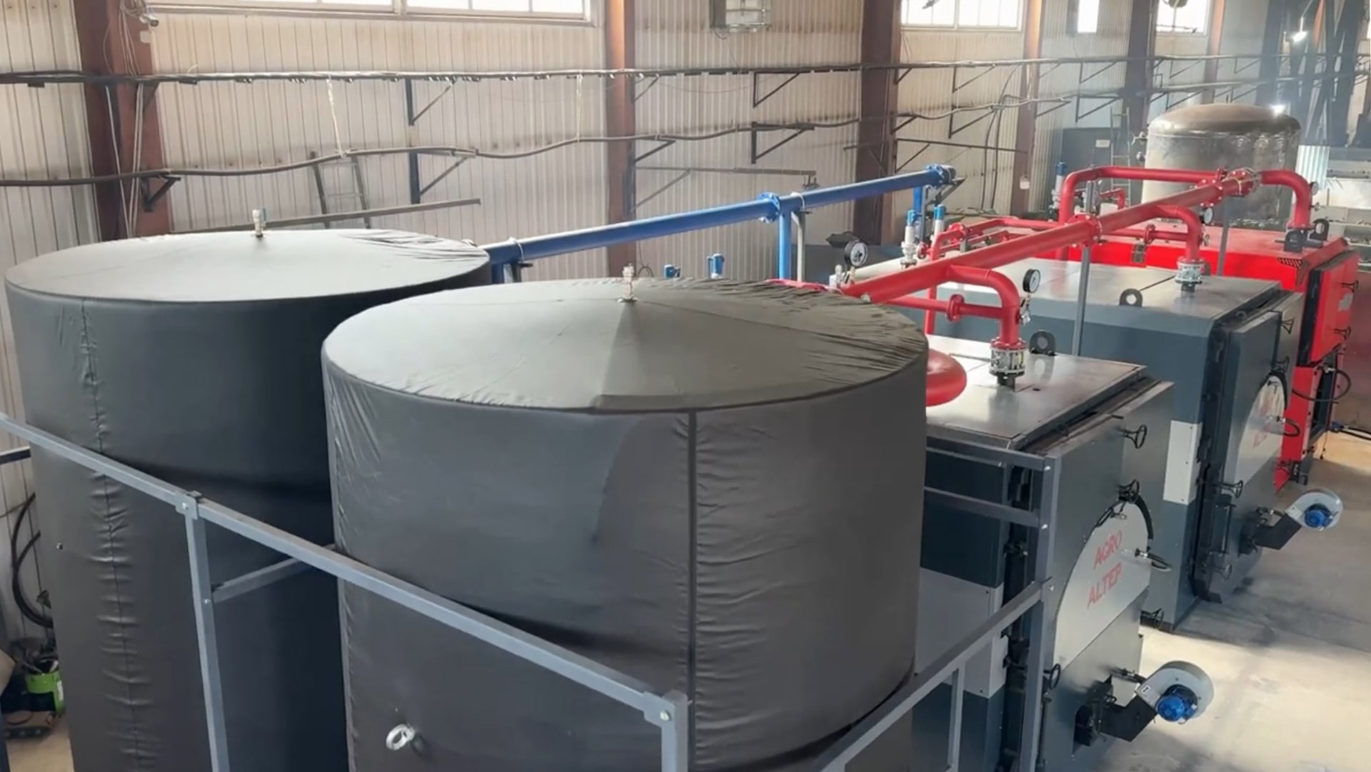 Важливою складовою даної модульної котельні є два теплоакумулятори Altep ємністю 10 000 л кожен. Загальна акумулююча ємність системи становить 20 000 літрів, що є важливим фактором для ефективної роботи гібридної системи з різними типами котлів і палива (процес горіння соломи має циклічний характер через специфіку завантаження тюків).