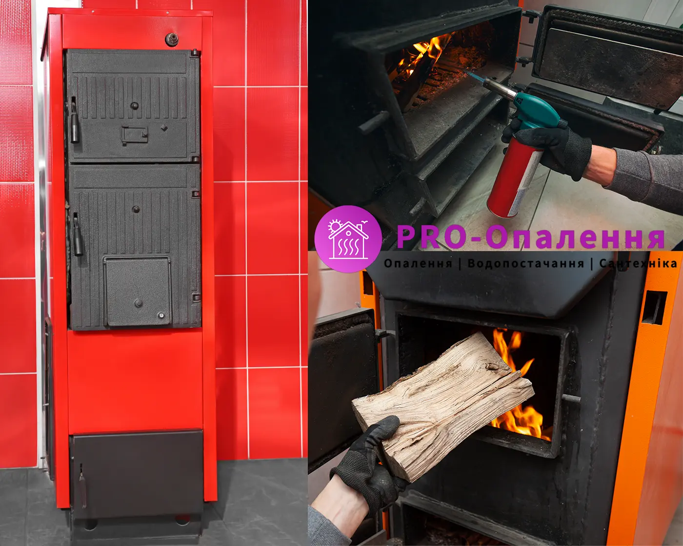 Приклад зовнішнього вигляду твердопаливного котла та його обслуговування.