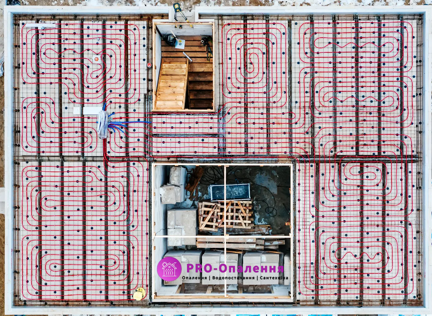Ось так виглядає укладання труб водяної теплої підлоги на прикладі будинку в процесі будування.