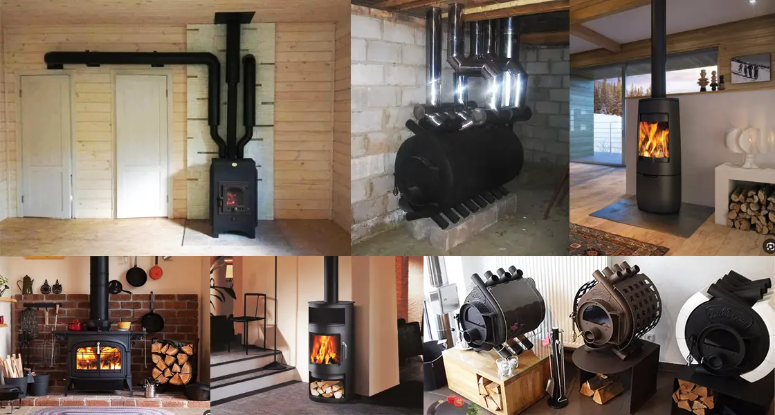 Також така піч повітряного опалення може впоратися зі своїм завданням без повітряних каналів або з їх частковим застосуванням – наприклад, якщо піч має 8 труб подачі повітря, 4 можна залишити без підключення до системи трубопроводу та обігрівати приміщення, де стоїть ця пічка, а на інші одягнути гофротрубу та направити тепле повітря у потрібне місце.