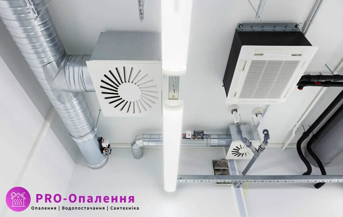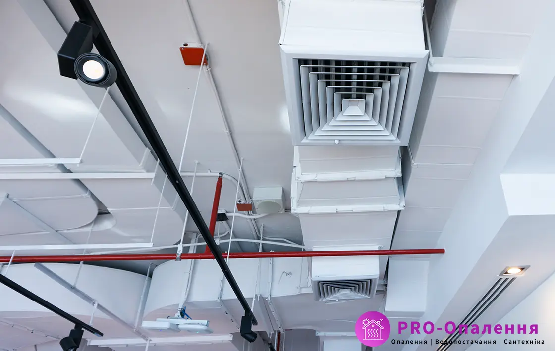 - Повітряні канали одночасно можуть вирішувати й інші проблеми – їх можна використовувати для вентиляції, кондиціювання (наприклад, у літній період), а також для зволоження та очищення повітря.