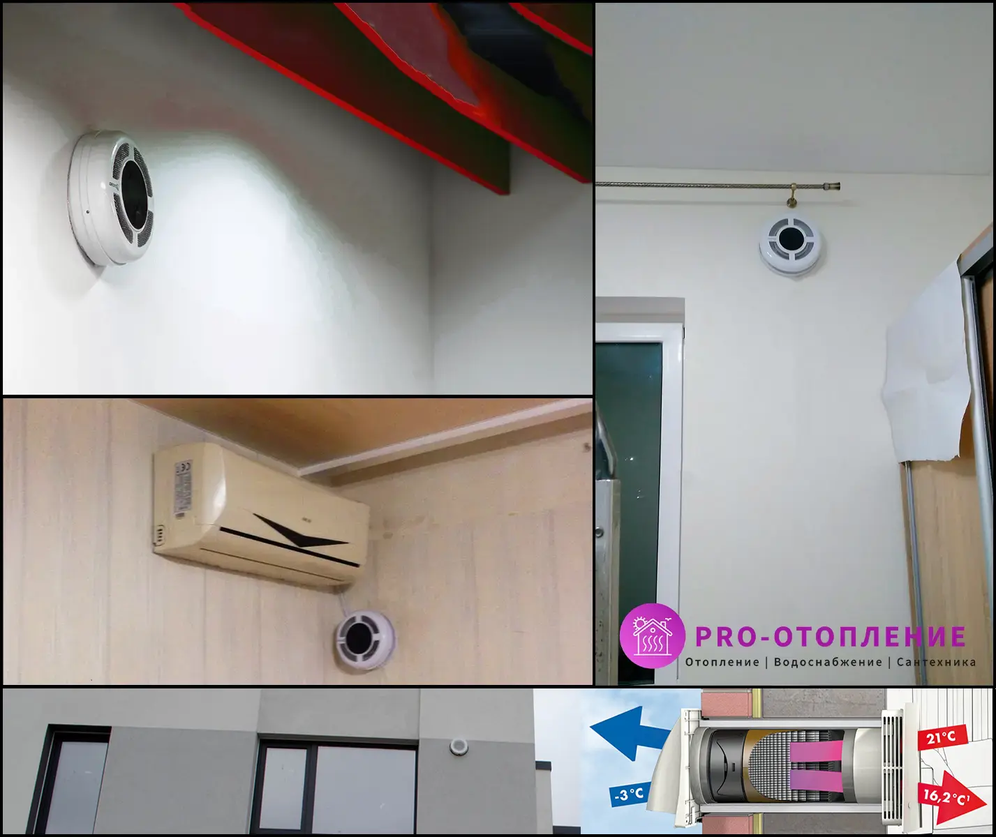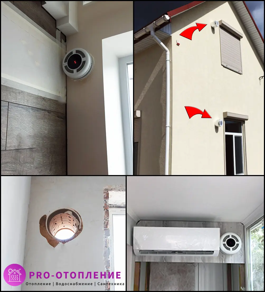 Фото: как выглядит установленный рекуператор внутри помещения и снаружи.
