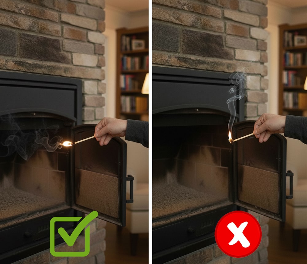 Що відбувається: заслінка застрягла в закритому або напівзакритому положенні, перекриваючи димохід. Дим не може вийти і йде назад.